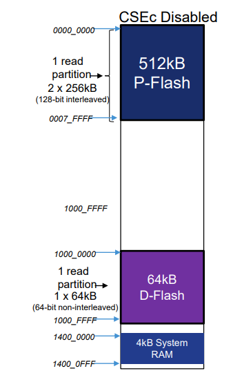 ①P-Flash 0x0000_0000-0x0007_FFFF(512KB)