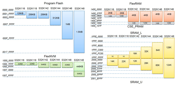 下面是S32K144的存储分类